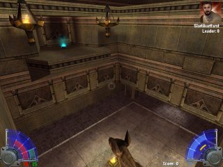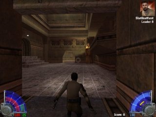 Description This is a Free For All map for 4 to 16 players. This is a Jedi Training map. The students can enter the arena areas and the masters can watch from the audience areas. In the large room, there are four crates that are moving around the room hanging from the ceiling. The crates are designed as small arenas that interconnect with each other through small doorways. One of the crate doorways lines up with the entrance to the main arena. Only the best and strongest of students can survive more than one battle in the main arena. |